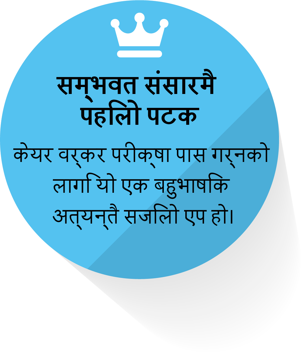 केयर वर्करमा काम गर्न चाहनेहरु र केयर वर्करमा काम गरिरहनु भएका ,विशेष सीप भिसाको साथ नर्सिङ हेरचाहमा संलग्नहरुका लागि । यो एप प्रयोग गरि केयर वर्करको राष्ट्रिय परीक्षा उत्तीर्ण गरौ ।